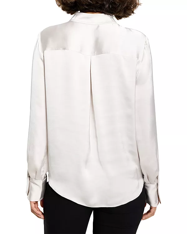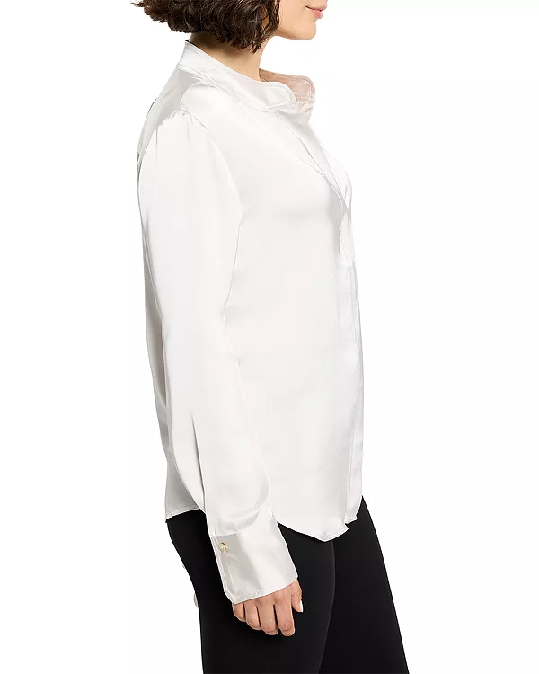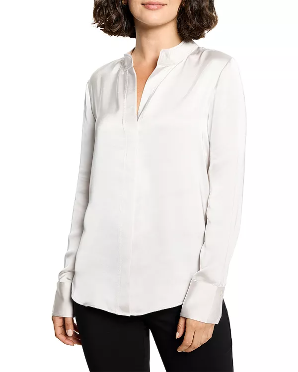 Бренд: Nic+Zoe Цвет: белый Простой топ с воротником-стойкой, выведенный на новый уровень благодаря необычной конструкции. Изготовленный из фирменной роскошной ткани Day Gloss, он сочетает в себе изысканный вид шелка с более прочной и простой в уходе структурой. Плотность ткани обеспечивает красивую драпировку, а воздушная структура гарантирует комфорт в течение всего дня.