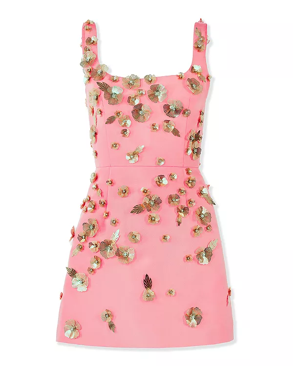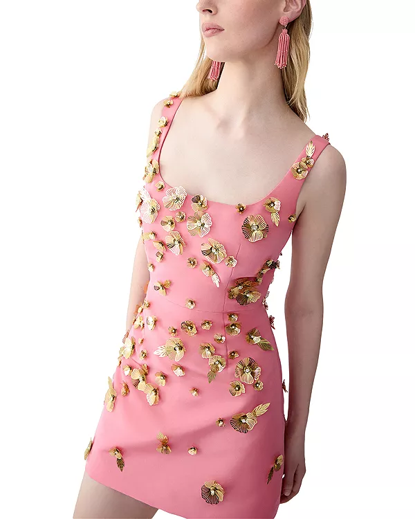 Украшенное шелковое платье Carolina Herrera, розовый