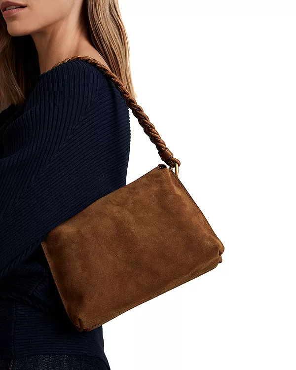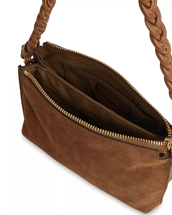 Особенности: Плетеная ручка Съемный ремешок, длина 19,7 дюйма Размеры: 7,9 дюйма Ш x 3,5 дюйма Г x 6,3 дюйма В Застежка-молния Два внутренних отделения и один накладной карман Фурнитура золотистого цвета Подкладка Основной материал: замша; отделка: 100% полиуретан; подкладка: 100% хлопок Импортный товар