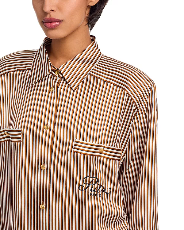 Полосатая шелковая пижамная рубашка Ritz Frame, бежевый 60 474₽