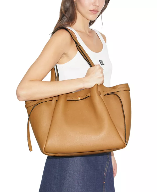 Бренд: Tory Burch Цвет: коричневый Сумка-тоут Romy выполнена из мягкой зернистой кожи с плавно собранным силуэтом. Легкая, с просторным внутренним отделением, организованным с помощью глубокого кармана на молнии, она вмещает телефон, кошелек, бутылку с водой, блокнот и ноутбук. Украшена тонким ремешком и новым логотипом на пуговице. Сумка, которую можно использовать и как ручную кладь в путешествиях, имеет широкий плечевой ремень для комфорта.