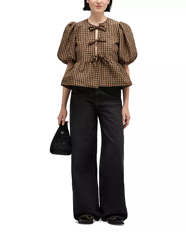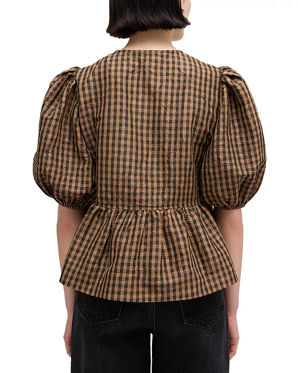 Рубашка из клетчатой тафты Ganni, коричневый