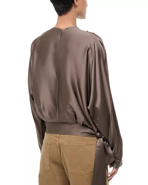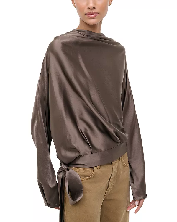 Шелковый эластичный топ Фиби Staud, коричневый