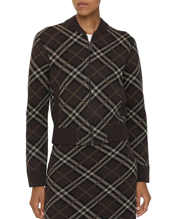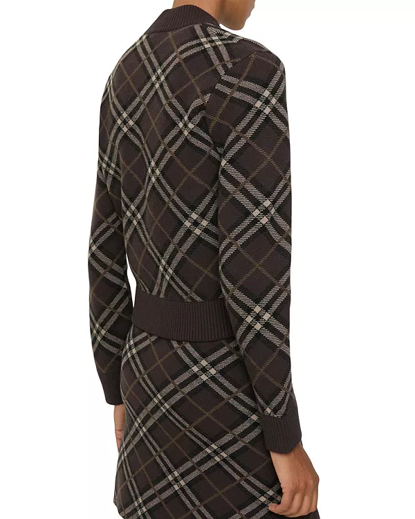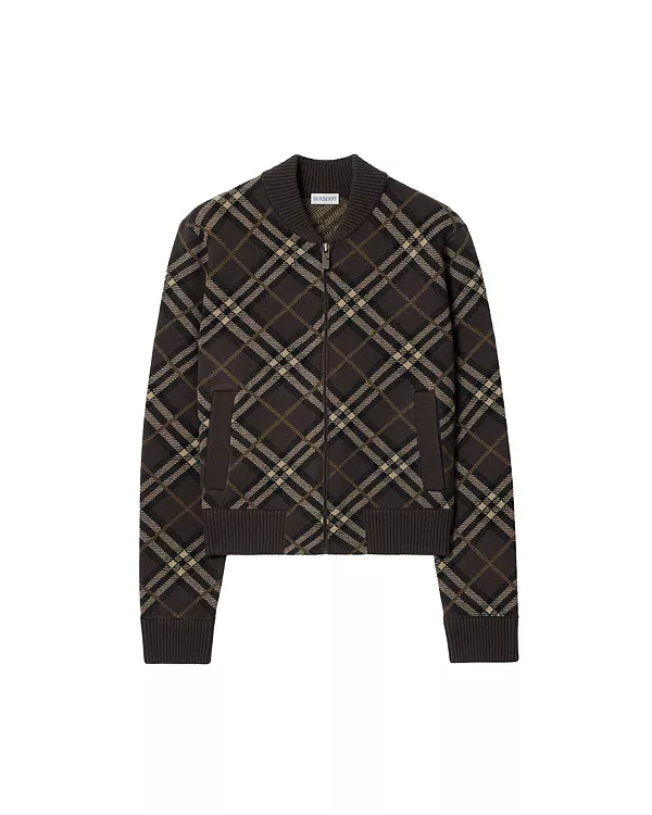 Бомбер из легкой шерстяно-кашемировой смеси, жаккардовый крой с клетчатым узором Burberry. Модель имеет стандартный крой и застежку-молнию B-образного выреза.