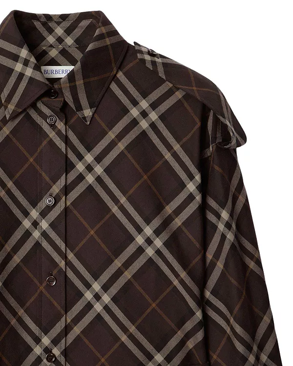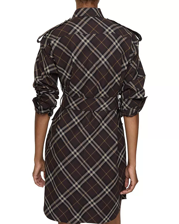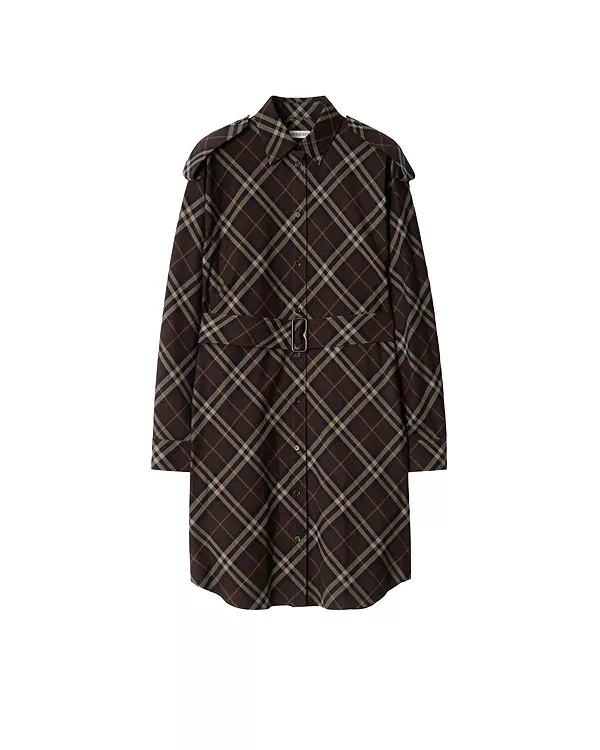 Бренд: Burberry Цвет: коричневый Платье-рубашка из хлопковой фланели с клетчатым узором Burberry в сезонном коричневом цвете трюфеля. Модель средней длины, свободного кроя, с поясом с пряжкой в форме буквы B для регулировки силуэта. Погоны на плечах вдохновлены нашим фирменным тренчем.