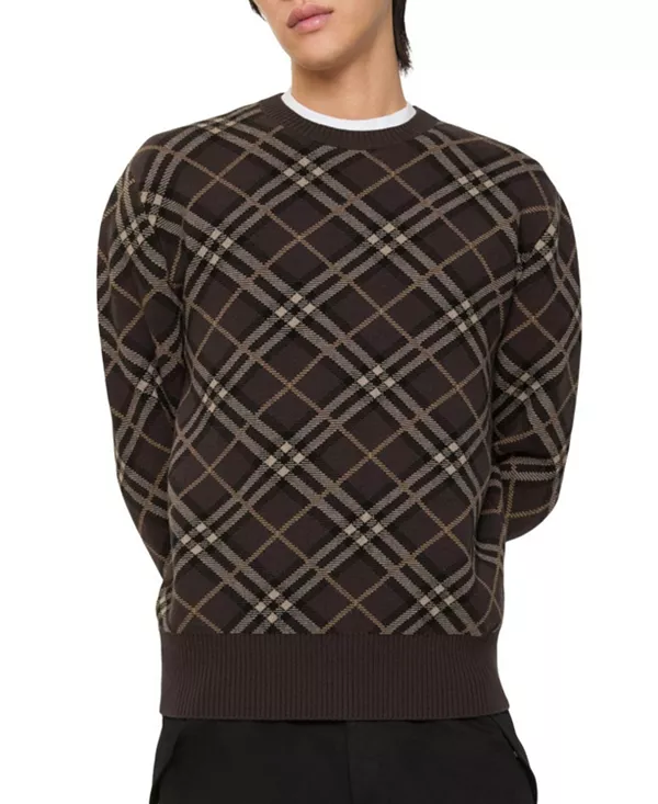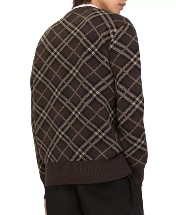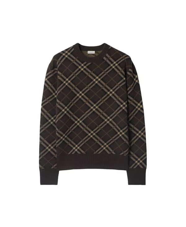 Свитер из легкой шерстяно-кашемировой смеси, связанный жаккардовым узором в клетку Burberry. Круглый вырез горловины, свободный крой.