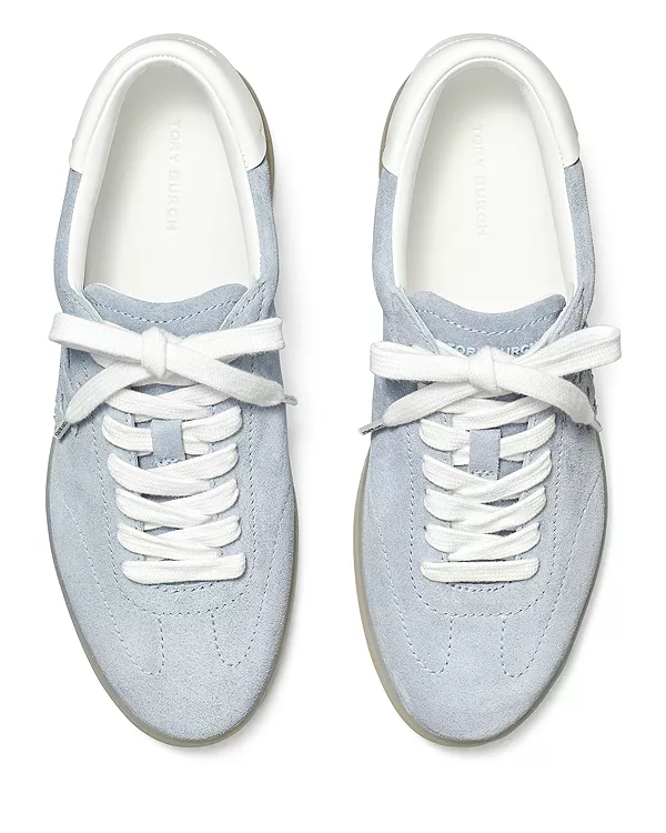Бренд: Tory Burch Цвет: синий Вдохновленные мифологией феникса, эти новые кроссовки Tory Burch акцентируют внимание на технических деталях, которые делают их незаменимым элементом повседневного гардероба. Изготовленные из замши без подкладки для легкости и минималистичного дизайна, они имеют тональную строчку, подчеркивающую обтекаемую форму, а полупрозрачная резиновая подошва демонстрирует внутреннюю конструкцию обуви. Завершает образ вышитая буква Double T и контрастная задняя петля.