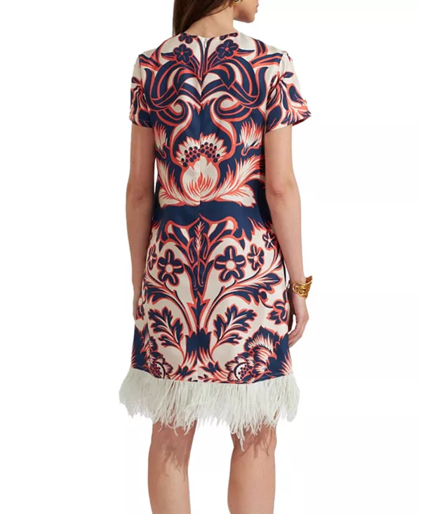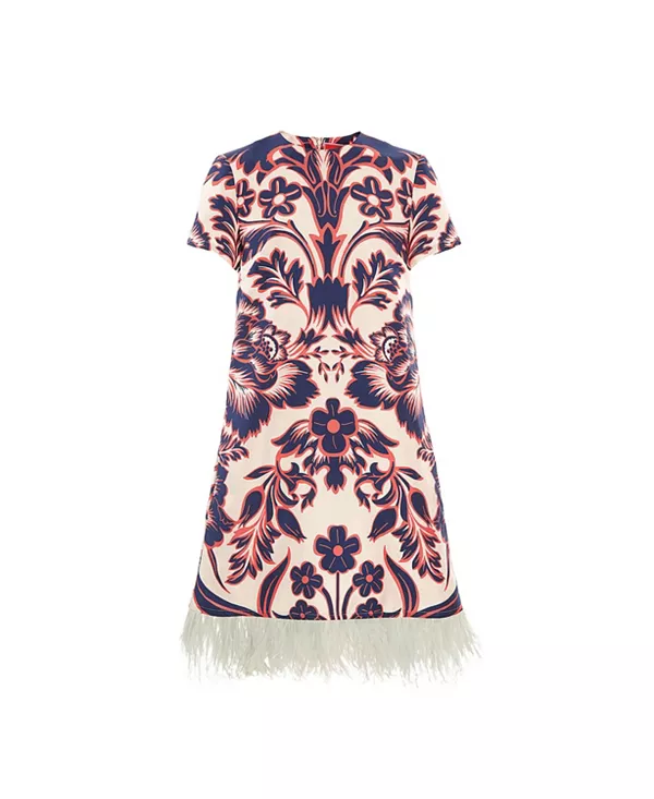 Бренд: La Doublej Цвет: белый Возьмите наше фирменное платье-трапецию, сделайте из него восхитительную стрижку, и вуаля! У вас получится мини-трапеция. Укороченная версия этого удобного силуэта футболки имеет узкие плечи и свободные бедра, длина примерно до середины бедра - идеально подходит для более миниатюрных поклонниц La DoubleJ или для того, чтобы продемонстрировать ваши легендарные ноги. Сшитое из нашей струящейся шелковой саржи, оно украшено перьями по низу для большей эффектности, когда этого требует приглашение.