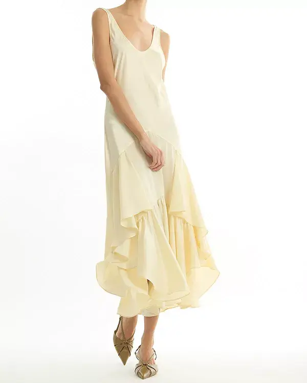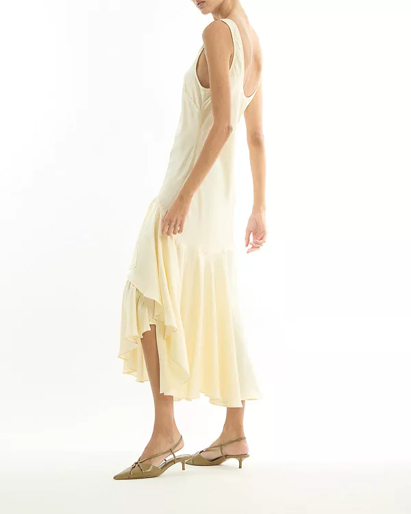 Платье Evelyn, изготовленное из 100% органического шелка, обработанного песком, отличается струящейся драпировкой и невероятно мягкой текстурой. Благодаря силуэту без рукавов и ниспадающим панелям, это макси-платье красиво движется при каждом шаге, излучая вневременную грацию.