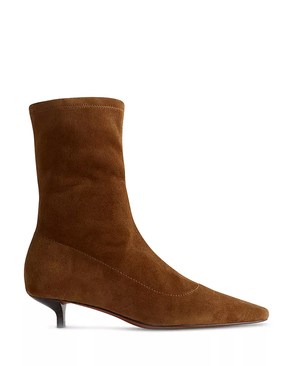 Эти замшевые ботильоны, созданные по индивидуальному заказу, имеют зауженный носок и невысокий каблук. Элегантность и непринужденность сочетаются в них, делая их идеальной парой, которую можно надеть с чем угодно, от джинсов до платьев.