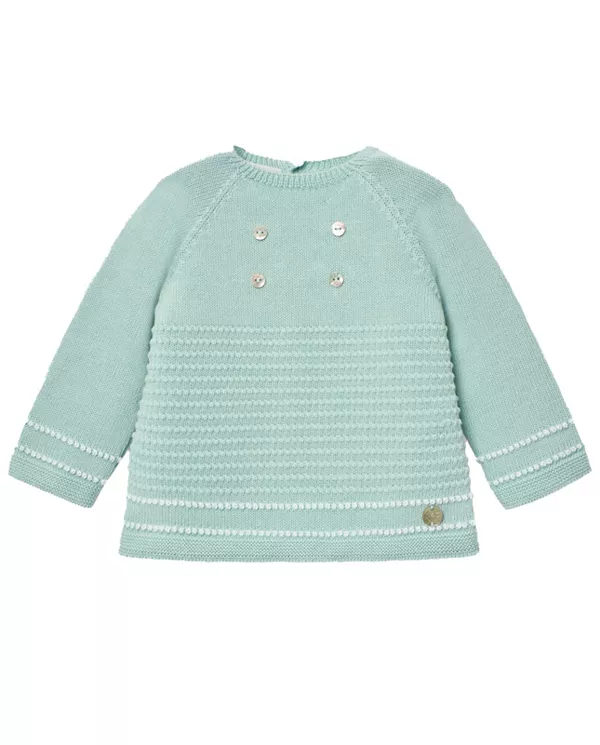 Особенности: Детский свитер с полосатым узором в тон. Он украшен четырьмя декоративными перламутровыми пуговицами спереди, имеет круглый вырез и перламутровую нашивку PAZZ Rodríguez по низу. Круглый вырез Длинные рукава с круглым вырезом Импортный товар