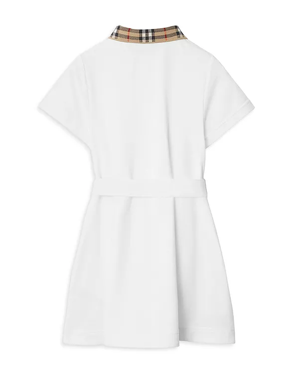 Это платье-поло от Burberry выполнено из хлопкового пике и дополнено воротником в клетку Burberry. Модель имеет пояс, который можно завязать бантом.