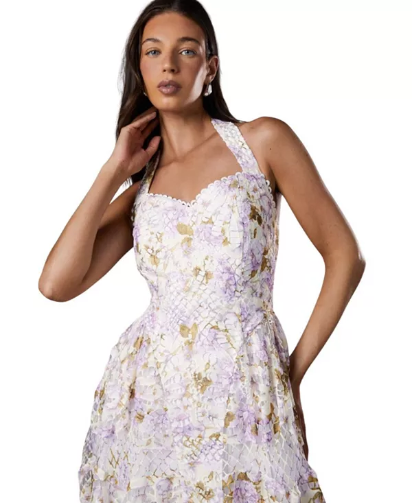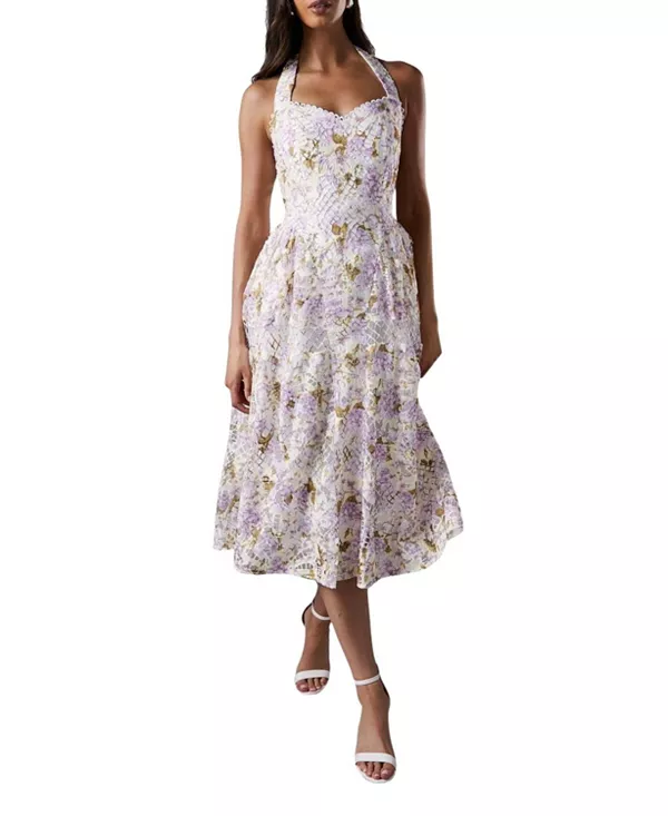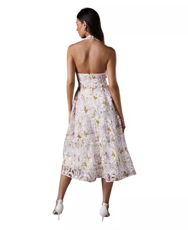 Платье-Миди с кружевом и принтом, с воротником-халтером. Coast, белый 26 849₽