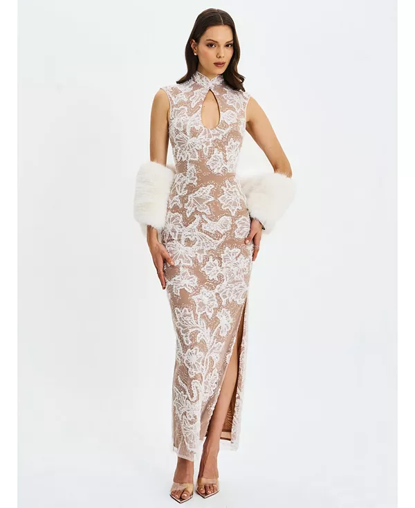 Платье-Макси Tavia с бисерным вырезом в форме капли Miss Circle, белый 51 884₽