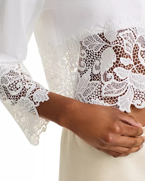 Основание из поплина с кружевной отделкой на манжетах и подоле