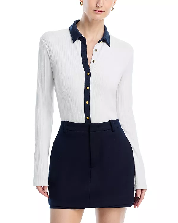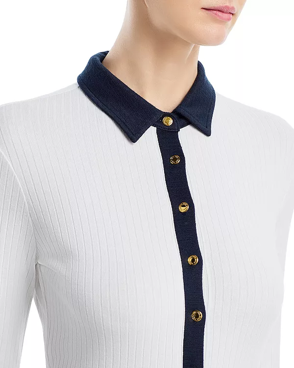 Вязаная контрастная рубашка-поло Rag & Bone, белый 17 124₽
