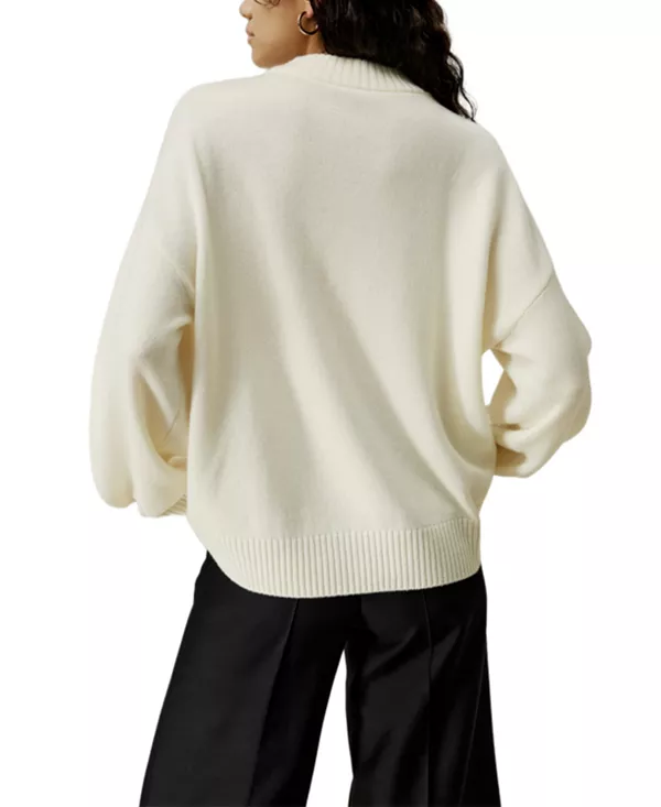 Этот свободный свитер, выполненный из роскошной смеси ультратонкой мериносовой шерсти и кашемира, с приспущенными плечами и рукавами-фонариками, имеет ребристый воротник, манжеты и нижний край и идеально дополнит любой низ, создавая непринужденно элегантный образ.