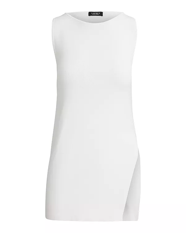 Этот свитер без рукавов с вырезом-лодочкой от Lauren Ralph Lauren выполнен в рубчик и имеет разрез по левому шву, создающий современный асимметричный силуэт.