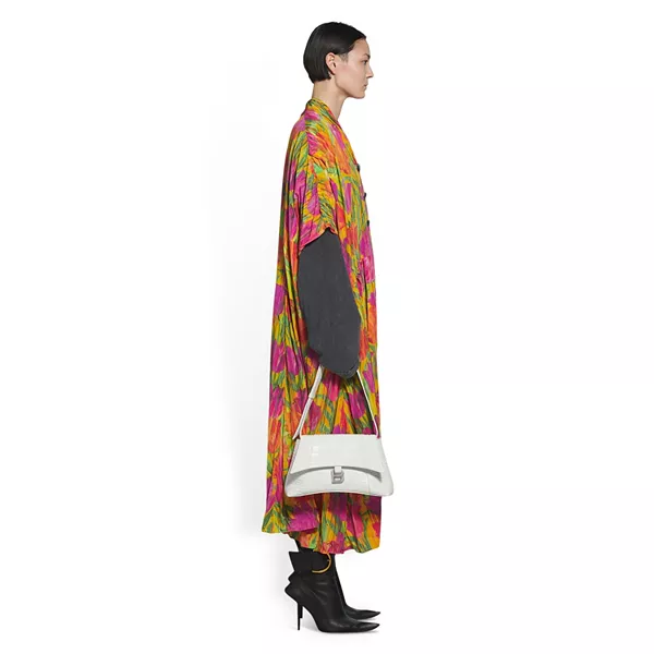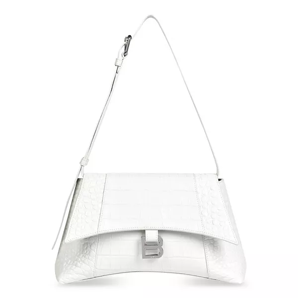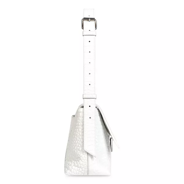 Маленькая сумка через плечо Downtown с тиснением под крокодила Balenciaga, белый