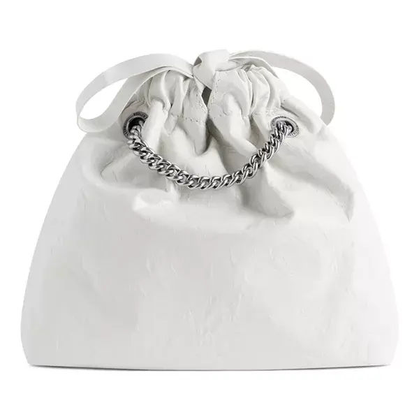 Особенности: Плечевой и кроссбоди цепочный ремень (длина: 19,3 дюйма) Размеры: 3,1 дюйма Ш x 7,9 дюйма Г x 7,9 дюйма В Застежка на шнурке 1 основное отделение Подкладка из хлопкового холста 90% телячья кожа, 10% овечья кожа Сделано в Италии