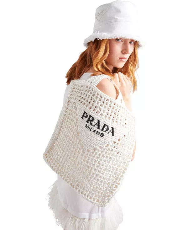 Вязаная сумка-шоппер Prada, белый