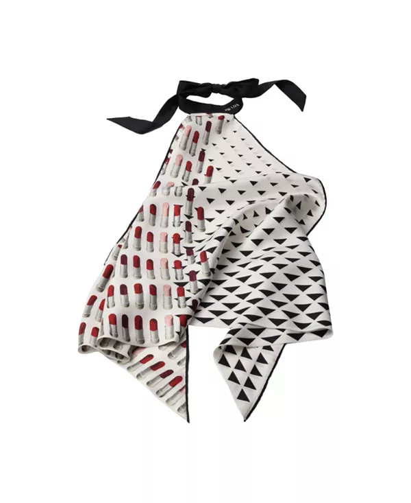 Шелковый твиловый шарф с принтом Prada, белый