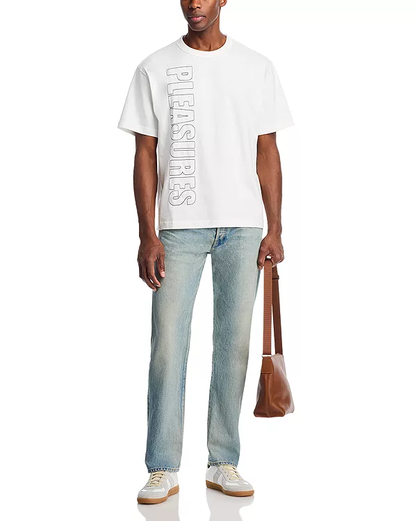 Футболка из плотной ткани с контурным логотипом Pleasures, белый