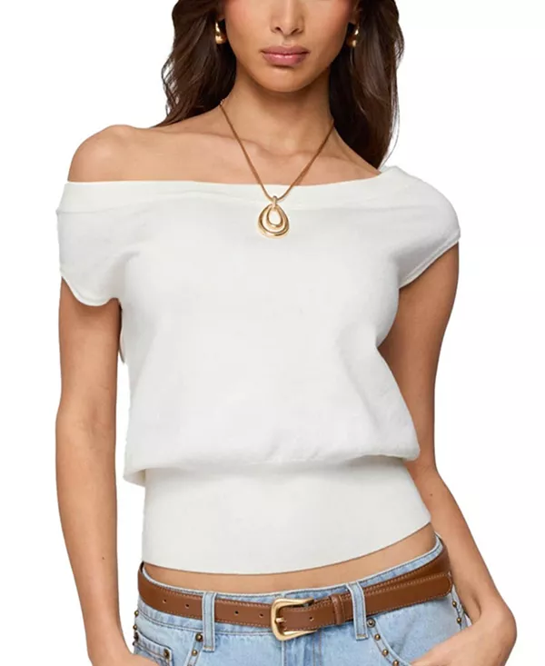Вязаный топ Микаэла с открытыми плечами Edikted, белый