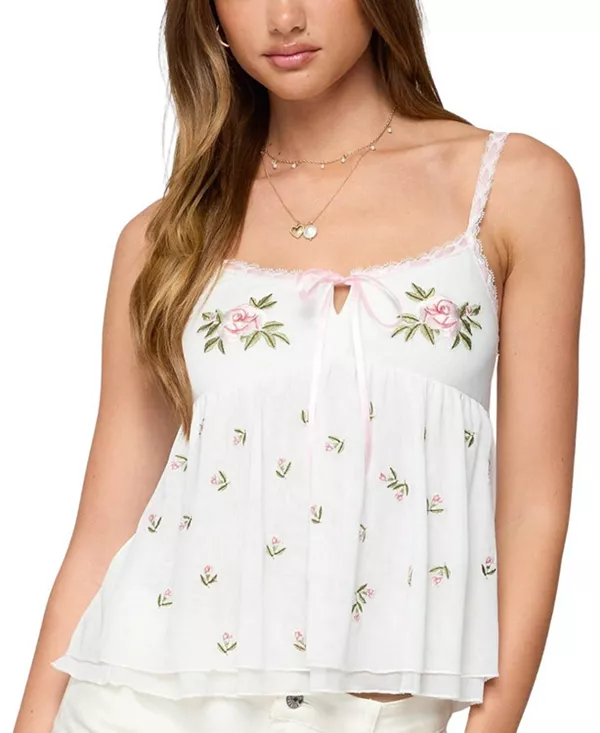 Вышитый многослойный сетчатый топ-бэбидолл Edikted, белый