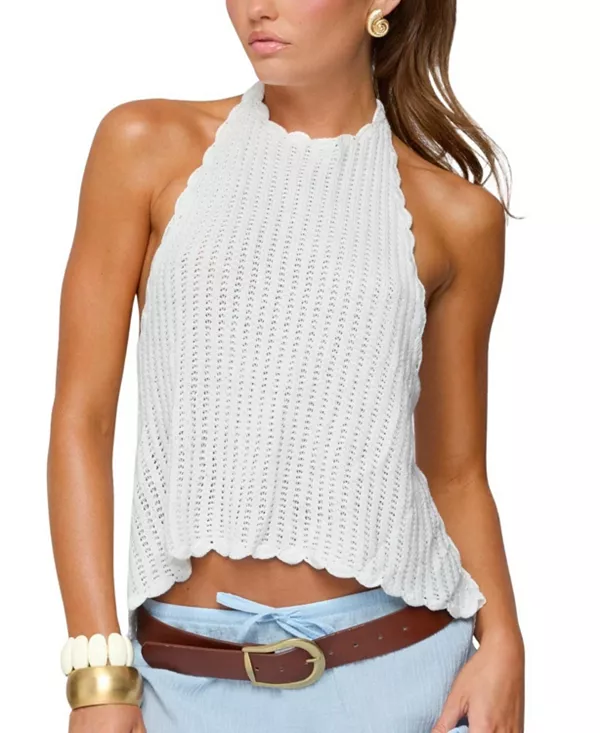 Вязаный крючком топ-халтер без спинки Ivey Edikted, белый