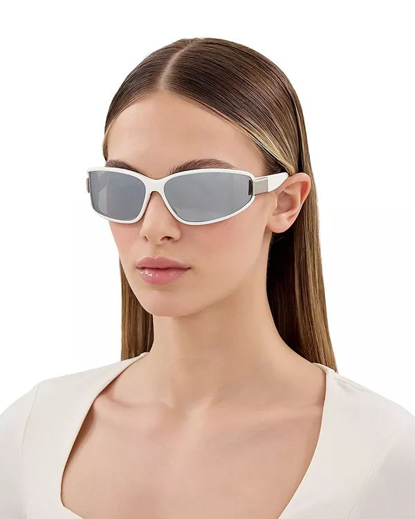 Солнцезащитные очки с геометрическим рисунком, 73 мм Gucci, белый 60 563₽