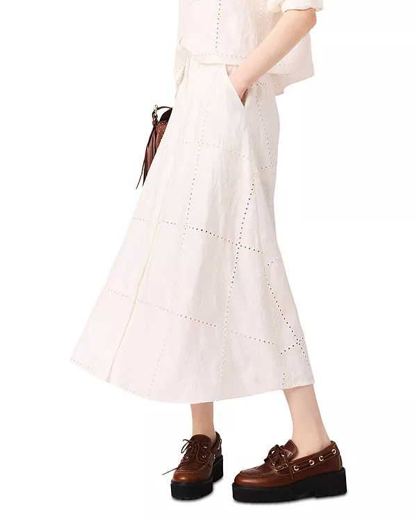Вышитая юбка миди - эксклюзив Maje, белый