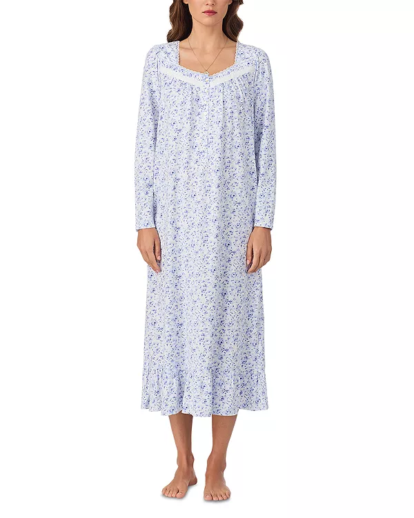 Ночная рубашка с длинными рукавами и цветочным принтом Eileen West, синий