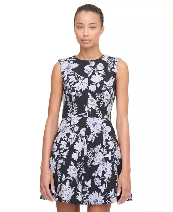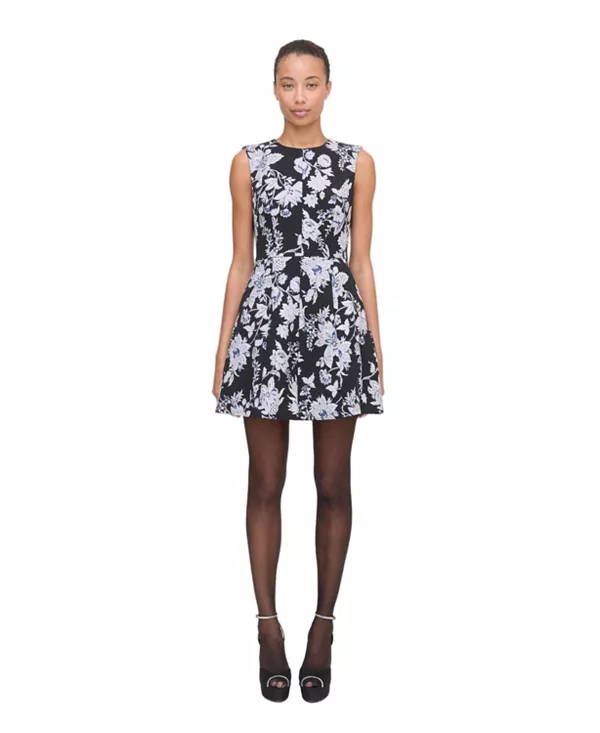 Представляем платье Joelle. Joelle - это мини-платье А-силуэта с высоким воротником, изготовленное из плотной парчовой ткани. Тщательно расположенные центральные и рельефные швы создают женственный и привлекательный силуэт.