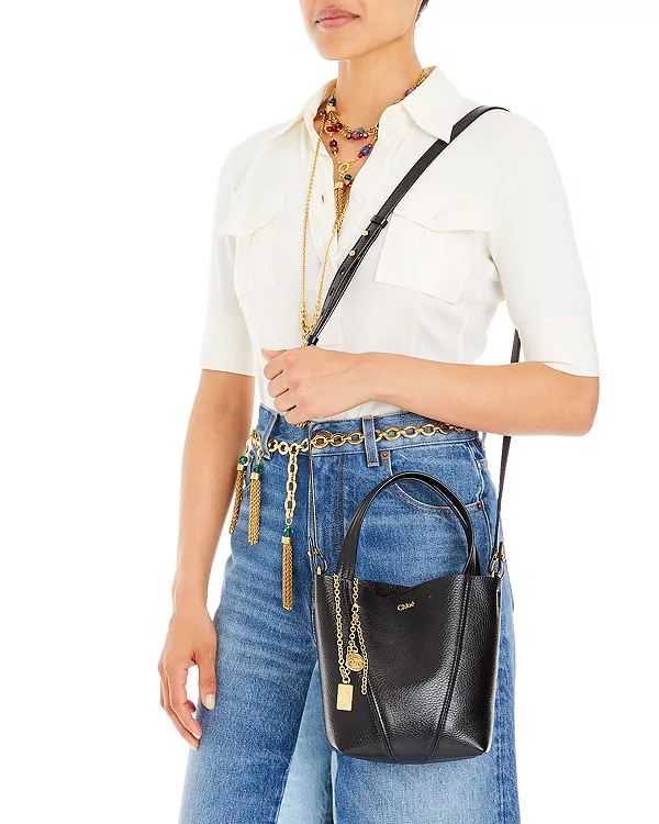 Эта небольшая сумка-тоут Chloé Spin отличается минималистичным силуэтом, дополненным графическими линиями и свисающей цепочкой с фирменными медальонами Chloé и изображением лошади.