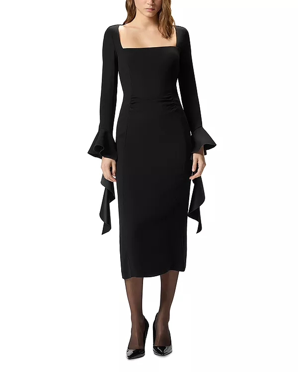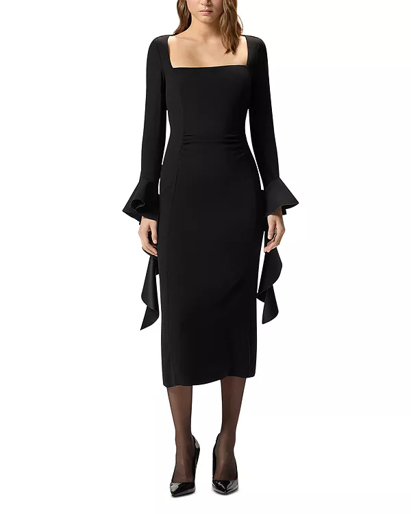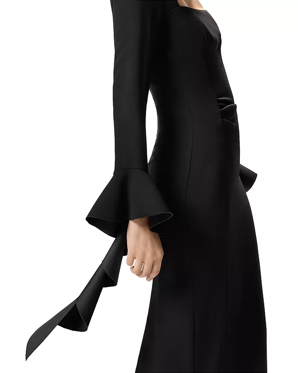Длинные рукава, манжеты-колокола с каскадной драпировкой