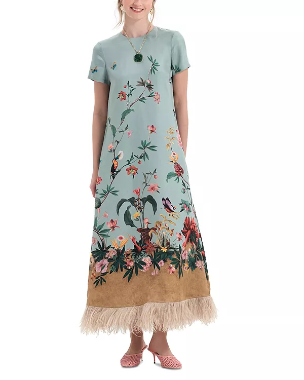 Платье из шелка с перьями La Doublej, мультиколор 134 212₽