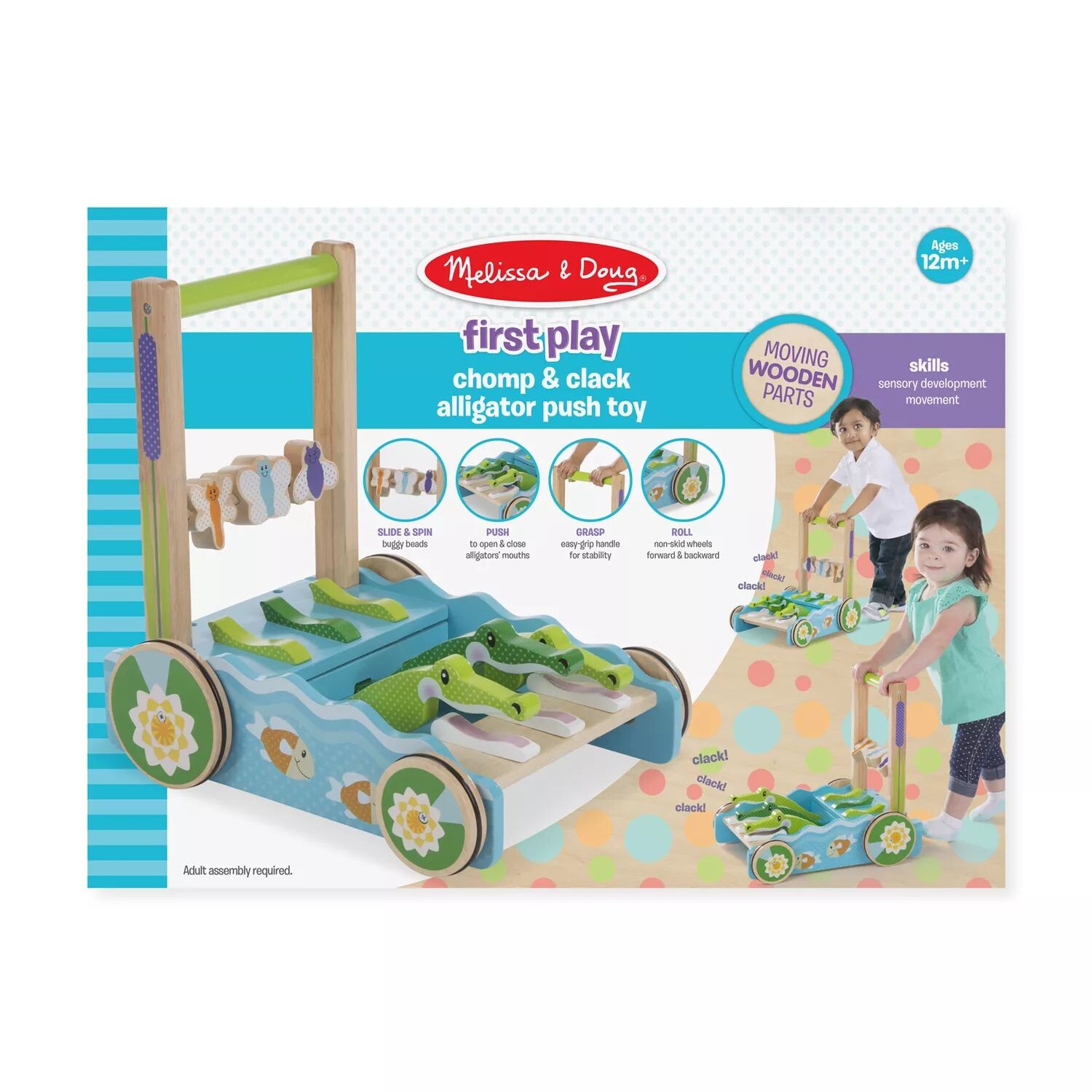 Займите своих малышей этой деревянной толкачкой/ходунками Melissa & Doug First Play Chomp & Clack Alligator.