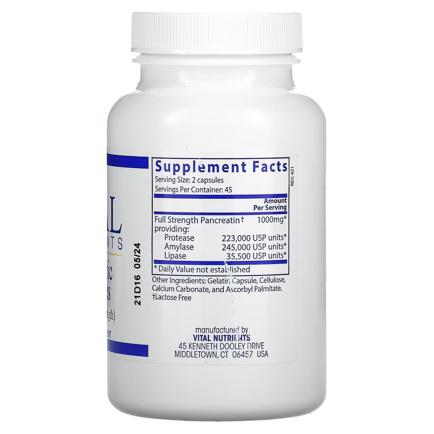 Не является лекарственным средством.Ферменты поджелудочной железы поддерживают здоровое пищеварение, поставляя естественные ферменты, которые секретируются поджелудочной железой. Эти ферменты поджелудочной железы необходимы для расщепления и усвоения пищи и ее питательных веществ, способствуя нормальному перевариванию белков, жиров и углеводов. Прием добавок ферментов поджелудочной железы вскоре после еды может помочь уменьшить газы и вздутие живота. При выборе добавок ферментов поджелудочной железы важно отметить, что полноценный панкреатин является предпочтительной формой, чтобы гарантировать, что он не содержит лактозы - часто используемого наполнителя, который может усугубить проблемы с пищеварением у значительной части взрослого населения с непереносимостью лактозы.