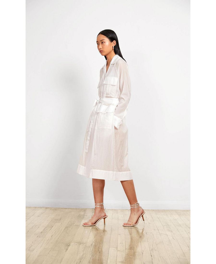 Эта универсальная куртка имеет накладные карманы, пояс на талии и регулируемую длину благодаря застежке на кнопках по низу. Ее можно носить четырьмя разными способами: как длинную рубашечную куртку, как платье с поясом или как укороченную куртку. Идеальный спутник в путешествиях, она имеет естественную текстуру ткани, поэтому не мнется, и невероятно легкая и дышащая, что делает ее отличным вариантом для многослойной одежды. Производится небольшими партиями в швейном квартале Нью-Йорка.