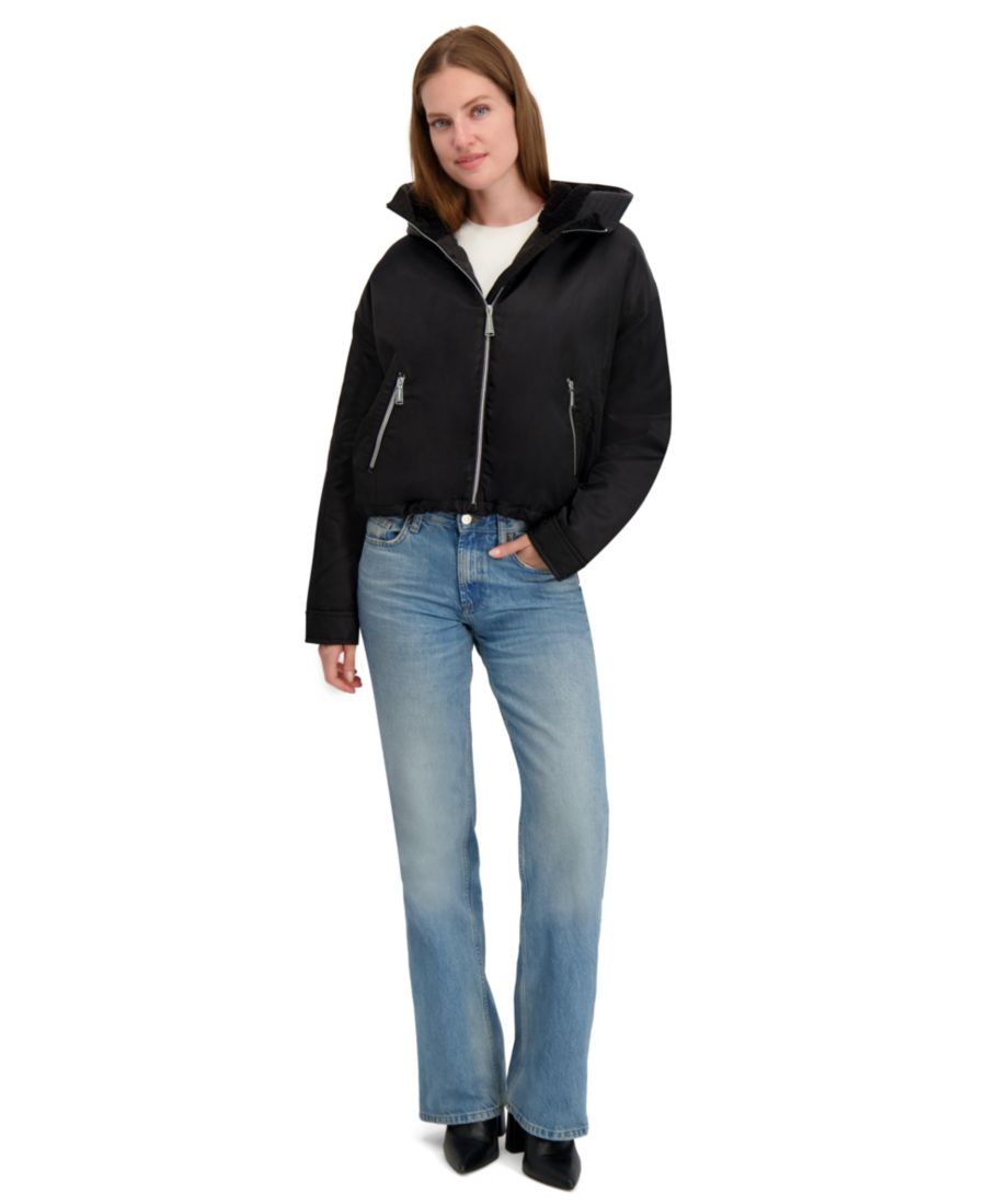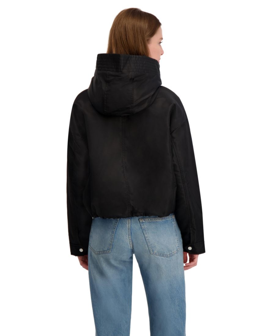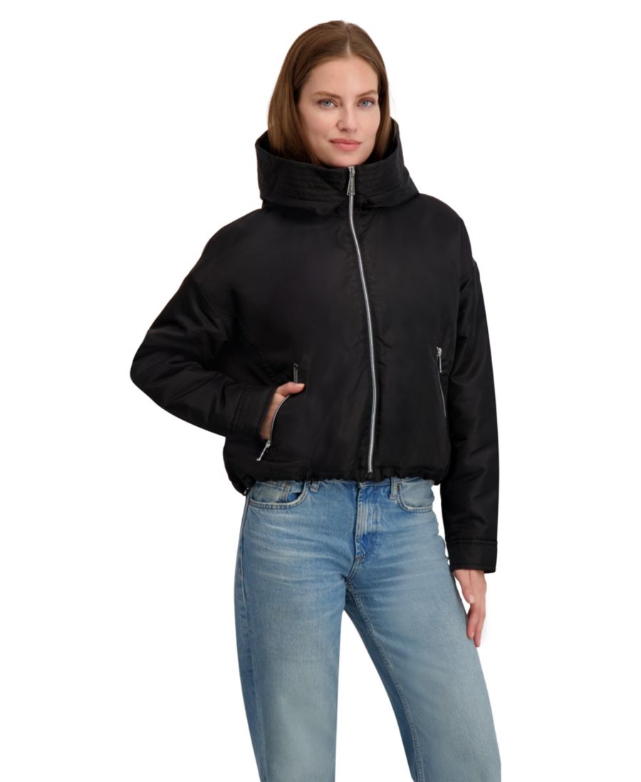 Для тех, кто предпочитает спортивный, но в то же время элегантный образ, эта куртка-бомбер с капюшоном - именно то, что нужно. Легкая и с легким блеском, она идеально подходит для ношения поверх спортивной или повседневной одежды. Свободный крой и затягивающийся шнурок по низу позволяют регулировать комфорт, а большой капюшон обеспечивает дополнительную защиту в ветреную погоду.