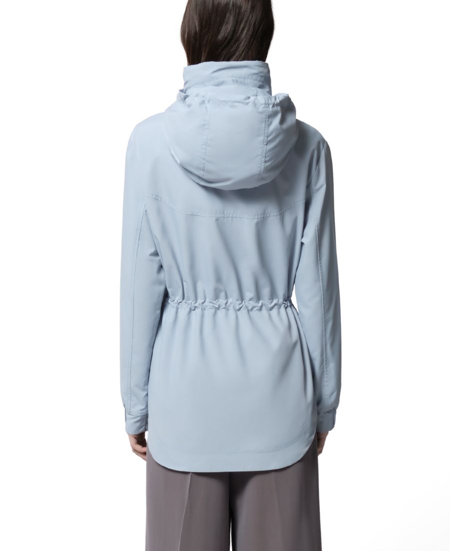 Свободный крой, длина до верхней части бедра, складной капюшон с регулируемым шнурком и алюминиевым фиксатором, воротник-стойка, застежка по центру спереди на одностороннюю пластиковую молнию SAB в тон ткани, поясной туннель с регулируемым шнурком и фиксаторами, эластичные манжеты, наклонные нагрудные карманы со скрытой молнией, боковые карманы с невидимой молнией, асимметричный низ, полностью на подкладке, складывается в сумку, водоотталкивающая, свободный крой, длина: короткая - доходит до бедра или ниже, длина от плеча до низа: 28 дюймов / 71,12 см.