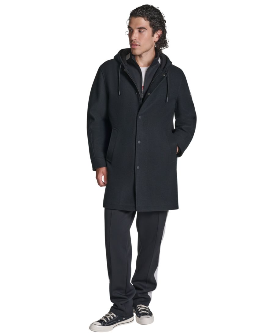 Расположение карманов: нижние передние и внутренние прорезные карманы со скрытой застежкой на кнопках