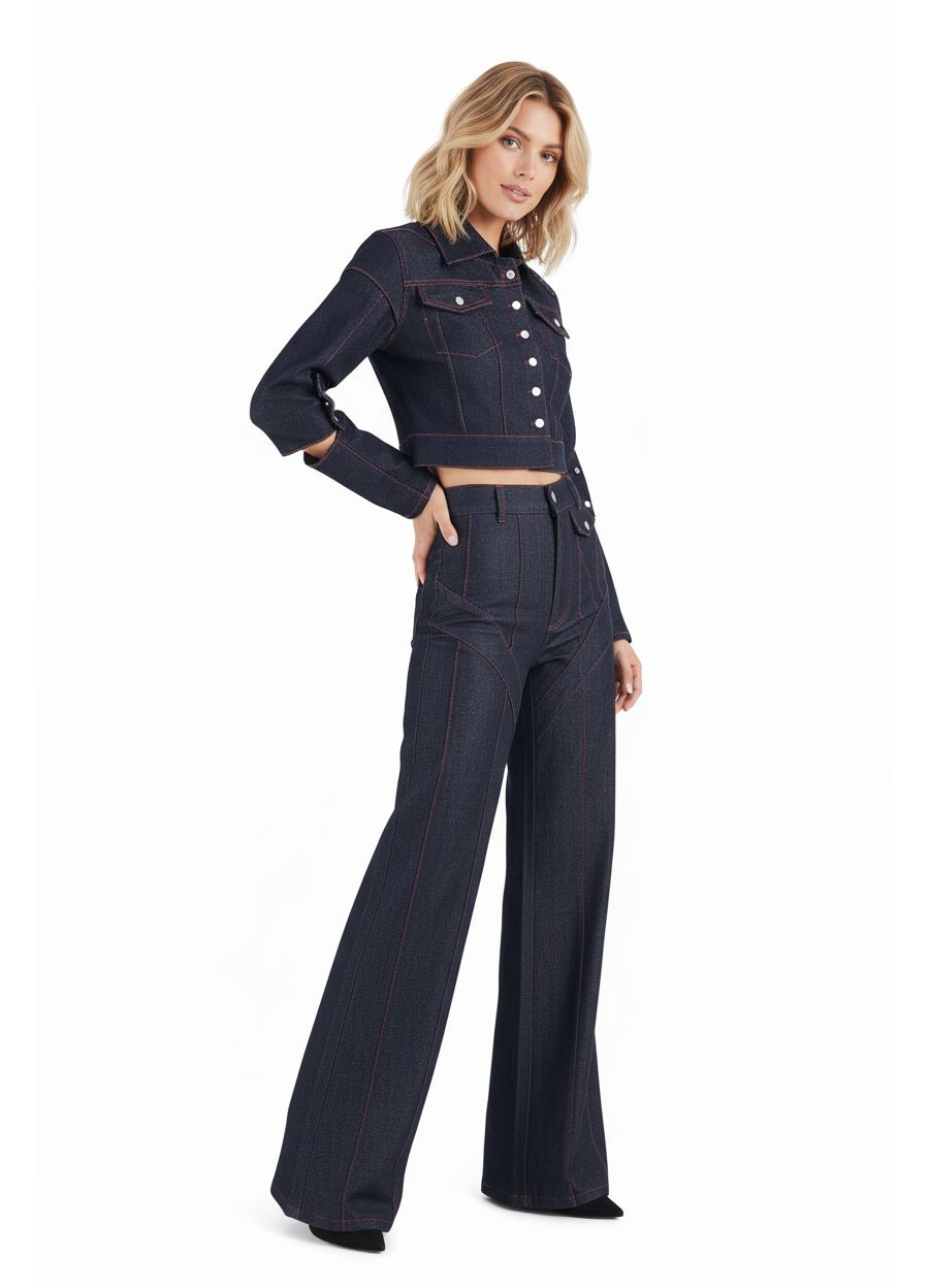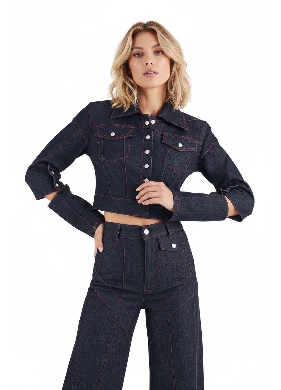 Двухцветный деним создает современный, стильный контраст.