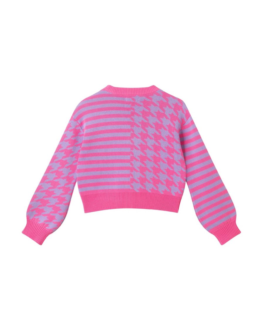 Смелый и игривый кардиган сочетает в себе два классических узора - полоски и клетку гусиная лапка - в свежей, яркой цветовой палитре. Сочетание розового и лавандового цветов мгновенно добавляет веселья, а укороченный крой и пуговицы под черепаховую панцирь придают ему элегантный вид. Рукава-баллоны и ребристые манжеты добавляют объема и структуры, делая его одновременно стильным и удобным в носке. Этот кардиган, будь то самостоятельный элемент гардероба или надетый поверх футболки или платья, - это воплощение комфорта и эффектности.