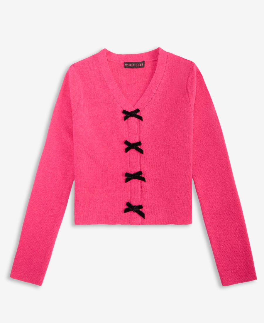Этот очаровательный мягкий кардиган от With Jules с бархатными бантиками спереди станет прекрасным и уютным дополнением вашего гардероба.