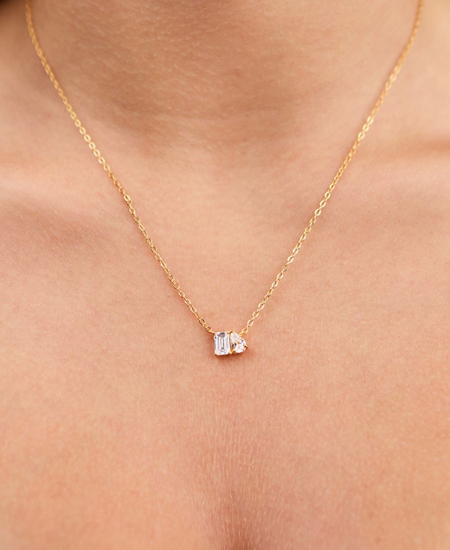 Колье Гвиневера из стерлингового серебра с кубическим цирконием - это свежий взгляд на культовый стиль Toi et Moi, что в переводе с французского означает ты и я. Камни изумруда и грушевидной огранки Сердца и стрелы с кубическим цирконием символизируют объединение двух разных форм в одно целое.