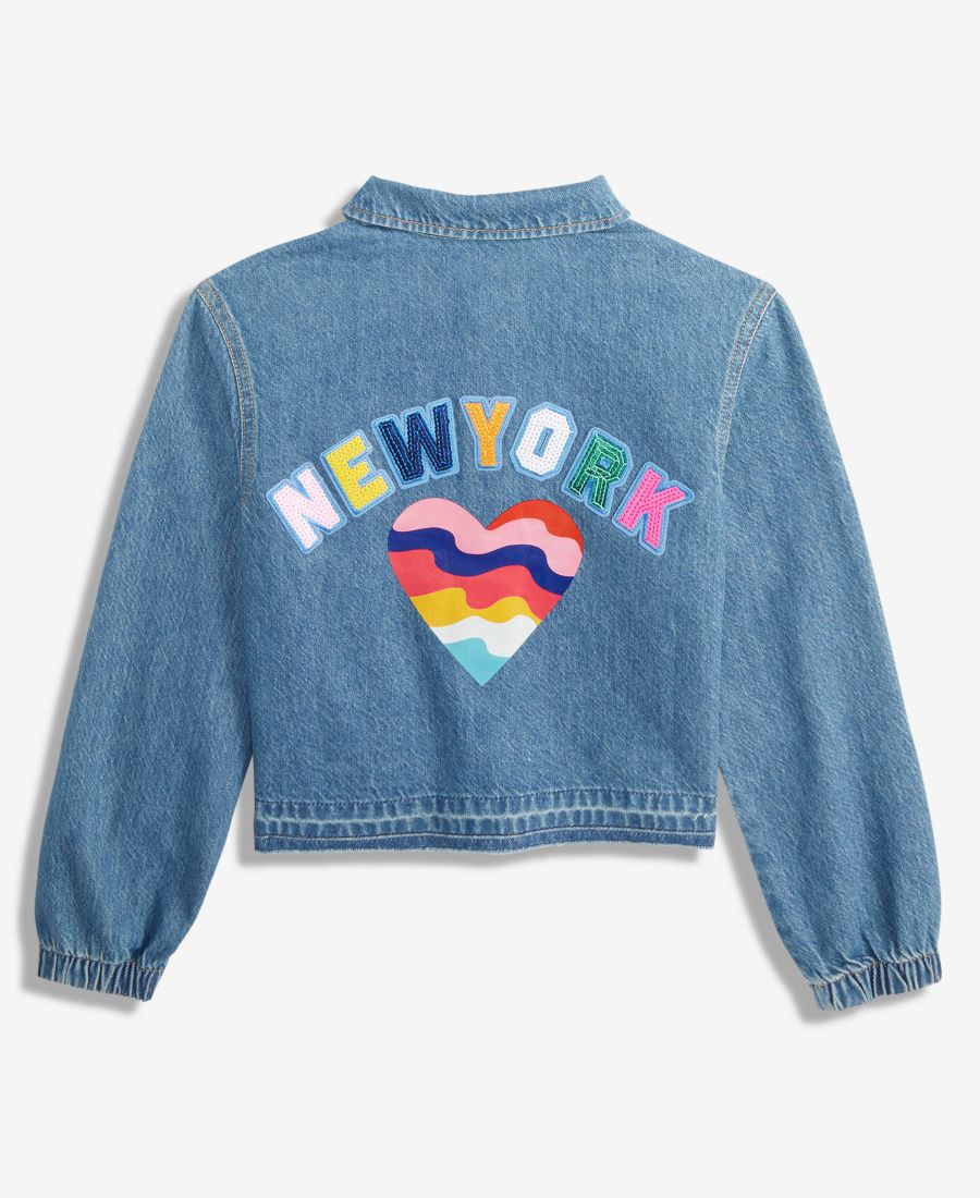 Яркие графические элементы и аппликации придают этой классической модели джинсовой куртки-тракера из хлопка от Epic Threads оригинальный и забавный вид.
