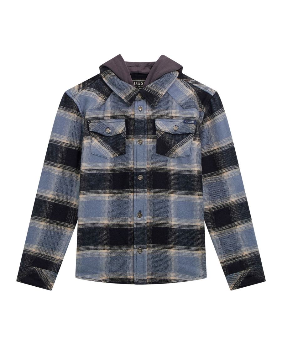 Эта фланелевая рубашка от GUESS идеально подходит для прохладных дней. Она имеет длинные рукава, капюшон и выполнена из ткани саржевого переплетения, окрашенной пряжей. Застежка на металлические пуговицы и съемный капюшон обеспечивают разнообразные варианты сочетания с другой одеждой.