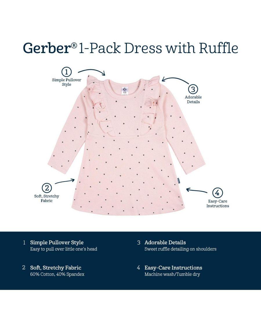 Детское платье для девочек с длинными рукавами и оборками Gerber, Pink